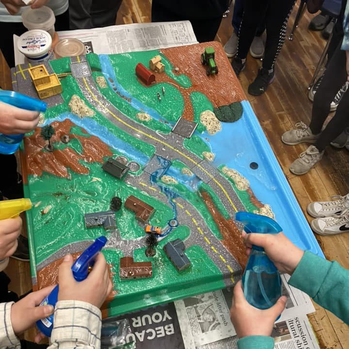This model is available for Classroom Demonstrations for grades K-12. It is used as an educational tool to demonstrate how everyday activities can result in Non-Point Source Water Pollution (NPS). Non-Point Source pollution refers to pollution which does not come from one single identifiable source, however it includes runoff from lawns, streets, farms and other surfaces. With the model, students are able to see and discuss the cause and effect of daily activities within the watershed. The model is designed for grades K-6, however high school students can benefit from the presentation as well. The model involves a hands-on approach for students.